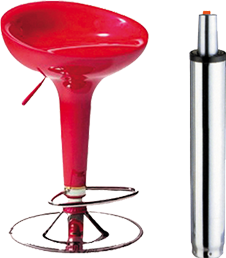 Podniesienie krzesła : Po pociągnięciu za dźwignię zawór otwiera się, uwalniając ciśnienie z komory gazowej wewnątrz cylindra. Gaz rozszerzający się wypycha dętkę do góry, podnosząc siodło.